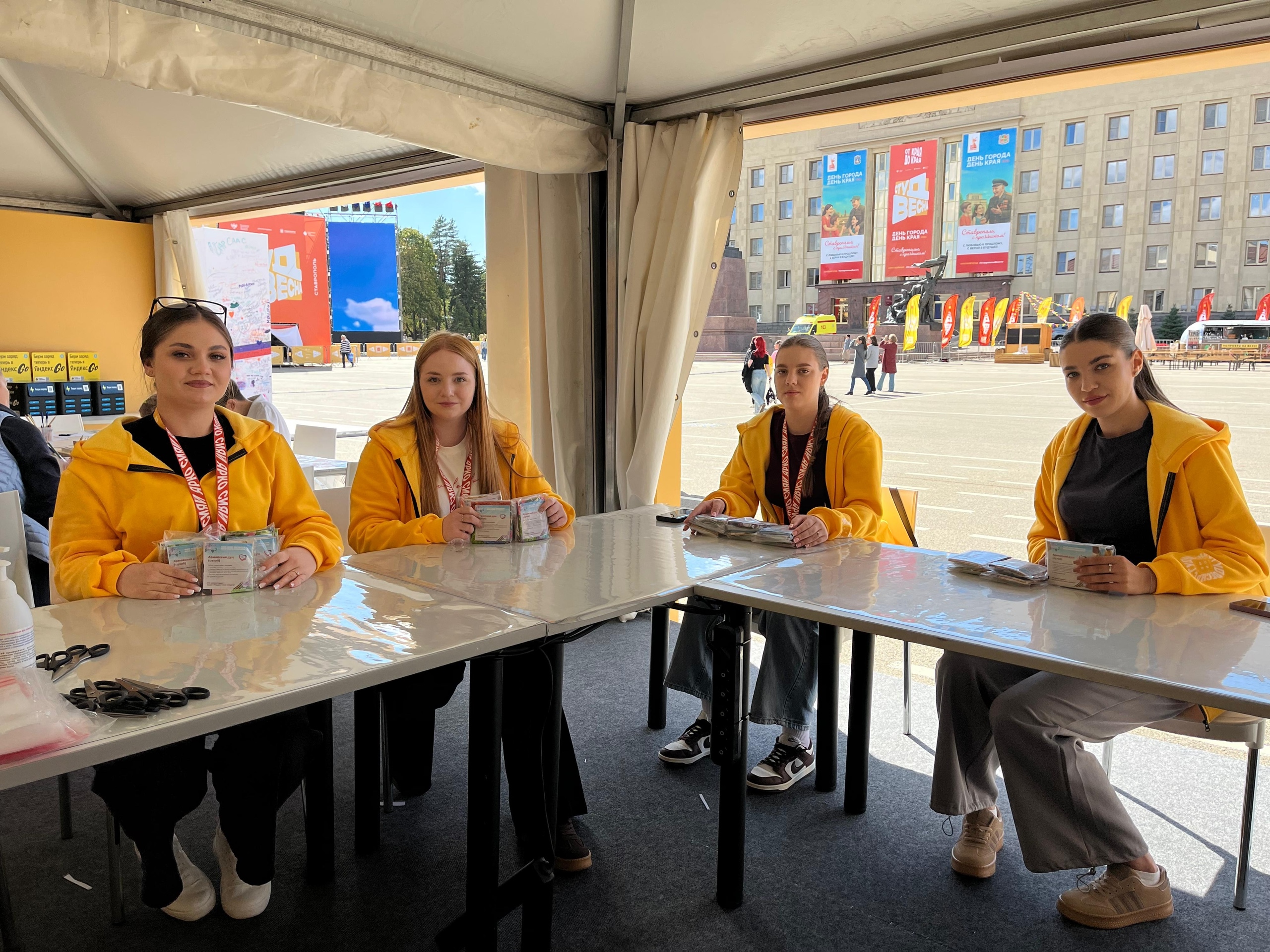 На площадке был организован «Фестивальный городок», где наши студенты смогли посетить множество различных интерактивов. Они написали письма солдатам и собрали армейский душ. Также нашим студентам выпала честь участвовать в забеге в национальных костюмах и принимать участие в открытии патриотического концерта.